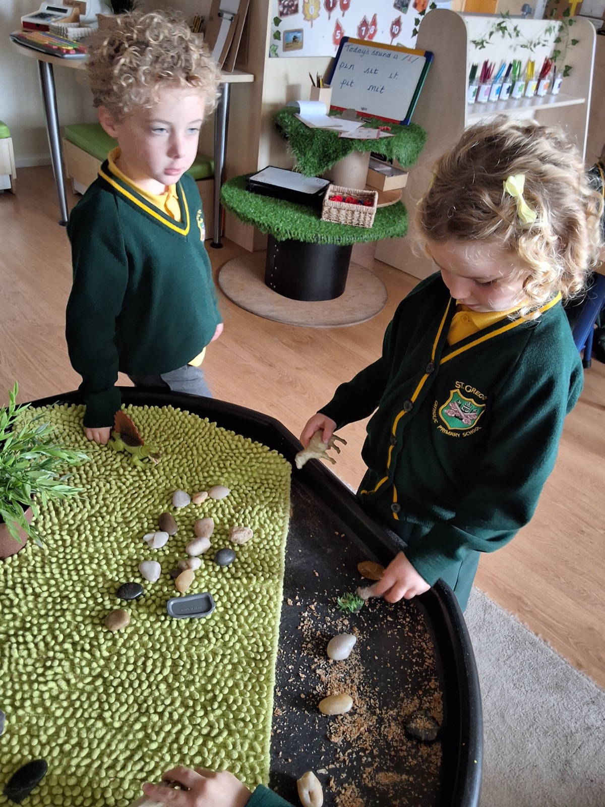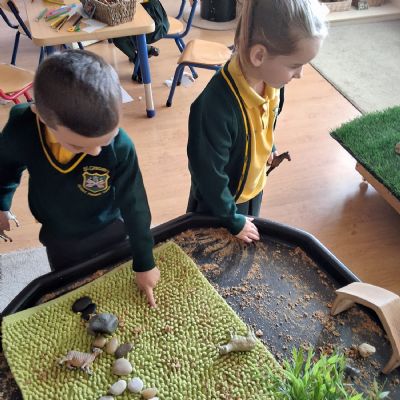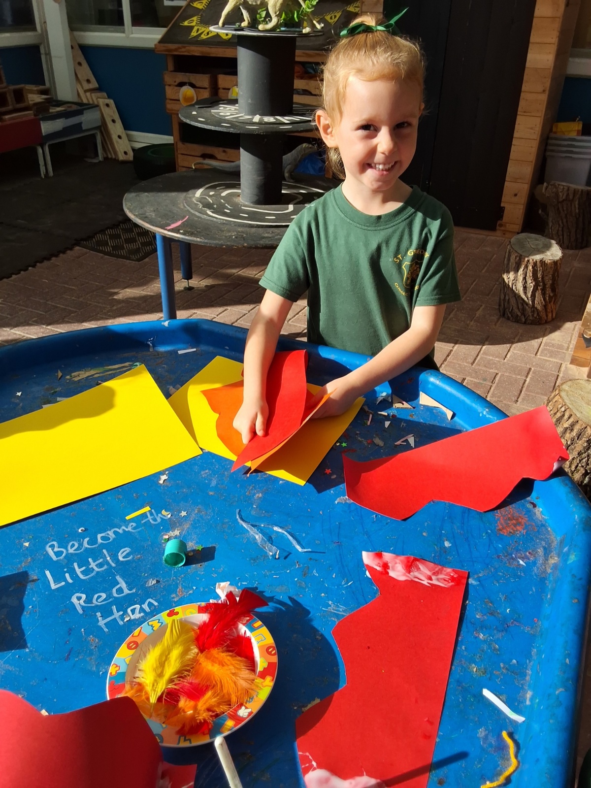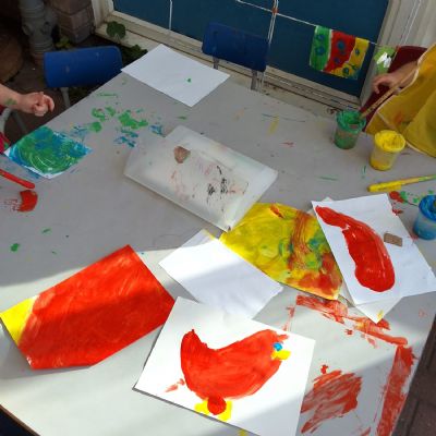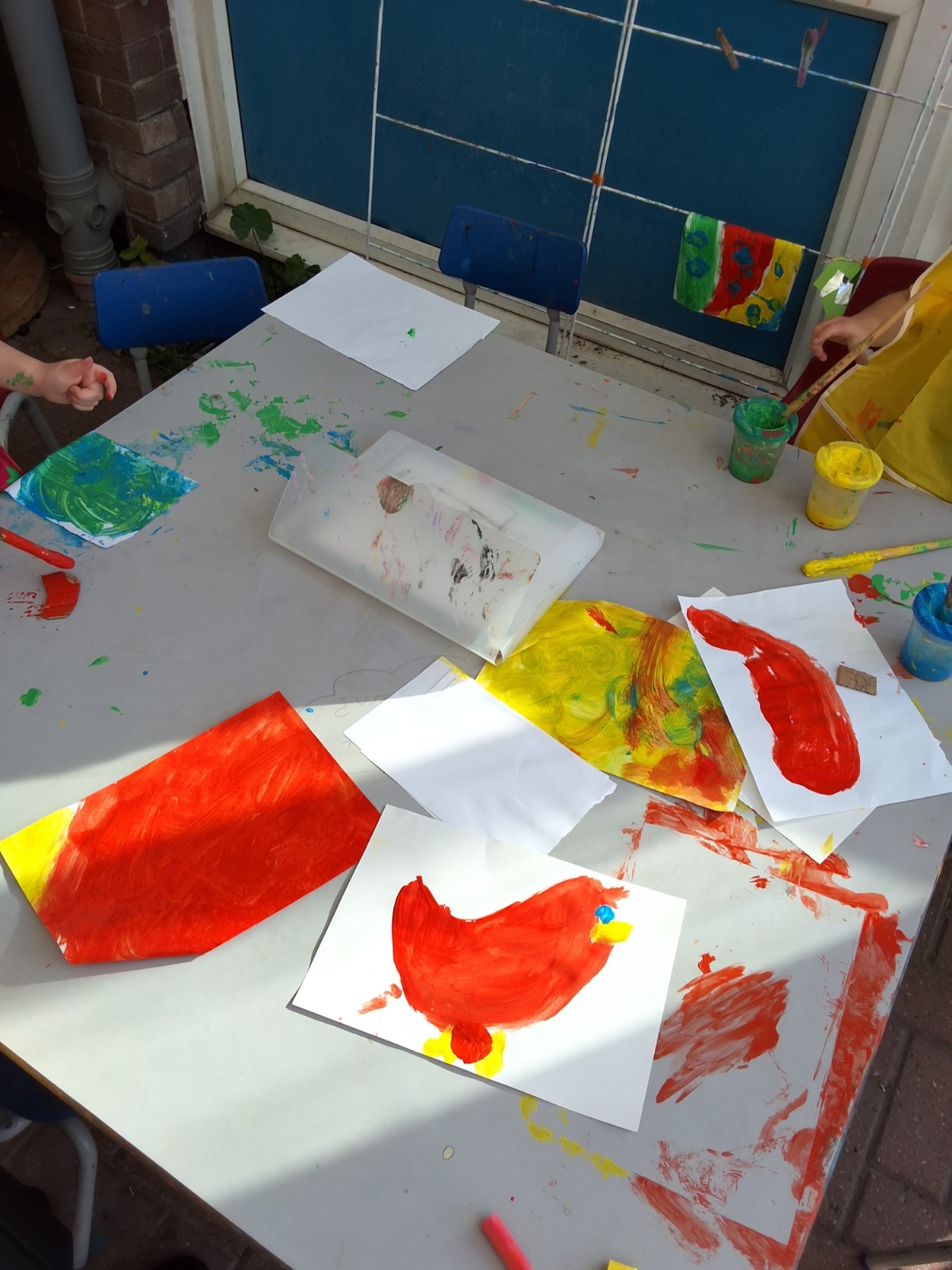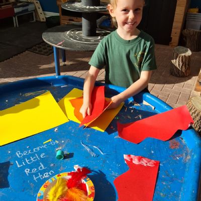 Our second book for Drawing Club was the tale of The Little Red Hen. The Little Red Hen works hard on the farm to sow seeds, harvest the crops and bake bread, but her friends don't help her! Reception created lots of beautiful pictures of the hen and her farm. We also made puppets of the characters and we had a farm in the small world play.