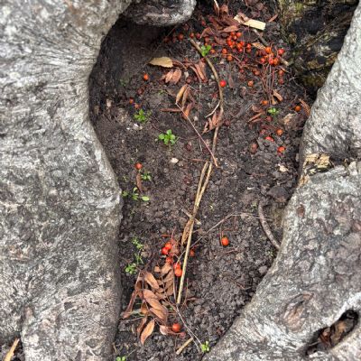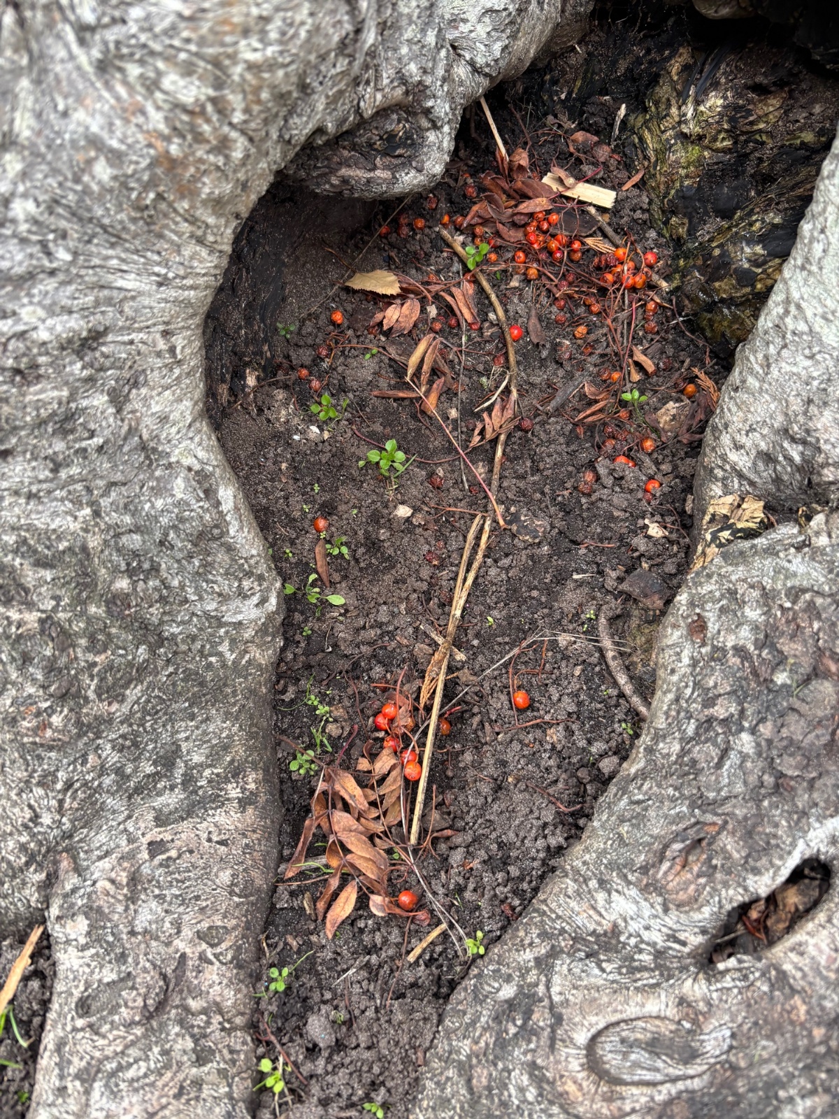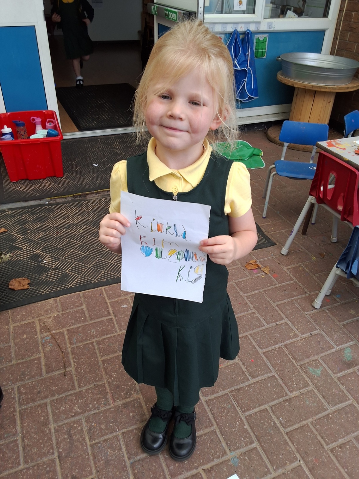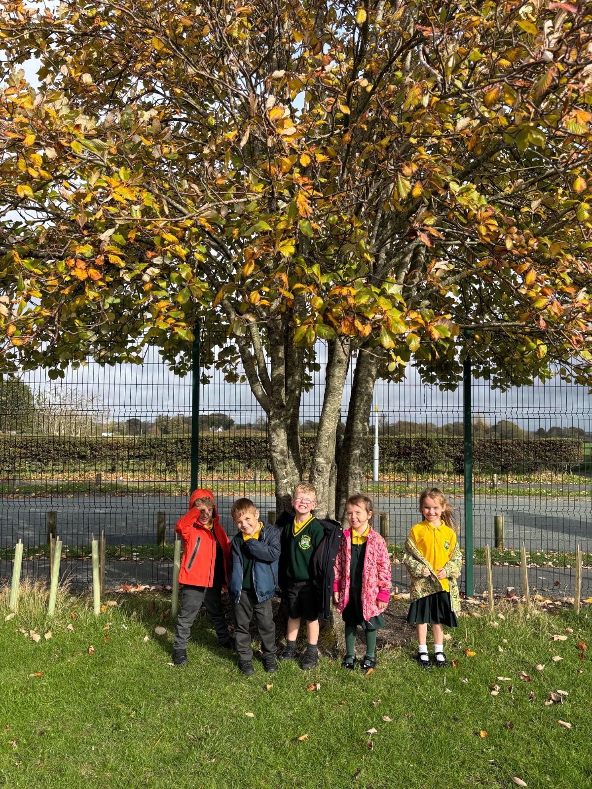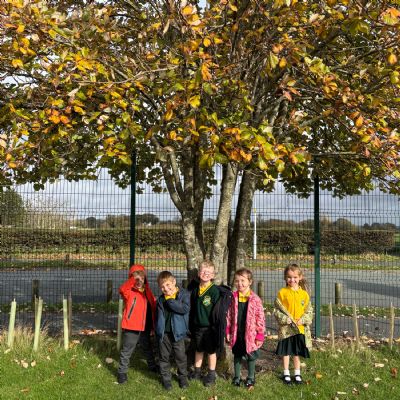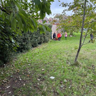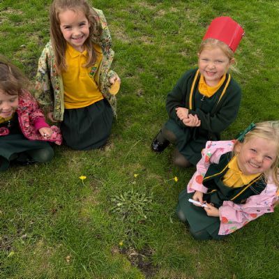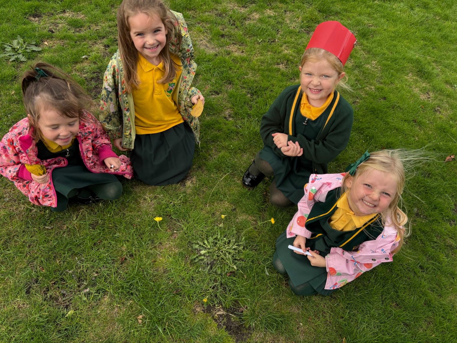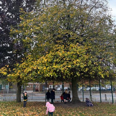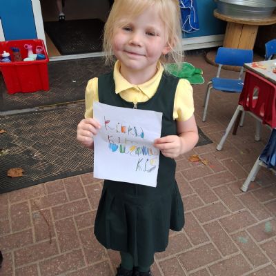 We watched a video called 'Automne' in Drawing Club this week. The character, Autumn, paints the world and creates autumn. We made autumn crowns, collected leaves to paint and make leaf rubbings, walked around school looking for signs of autumn, and we even found what we think is Autumn's home at the base of a tree!