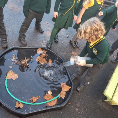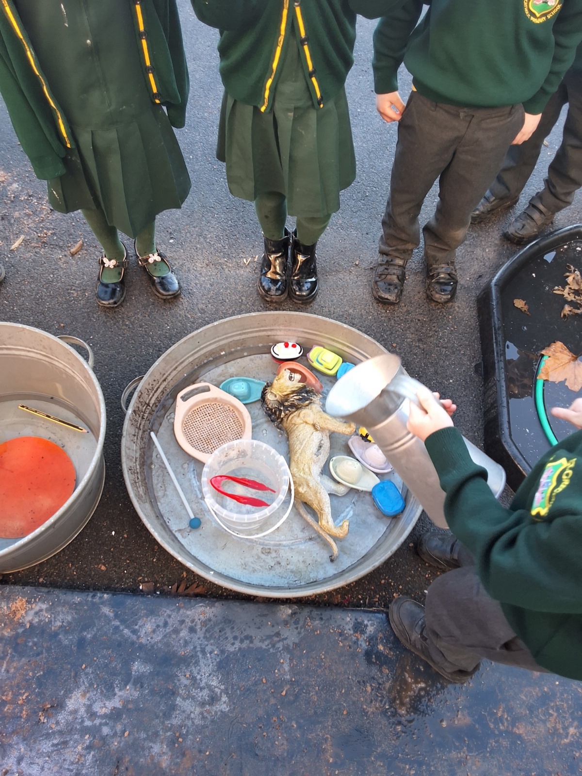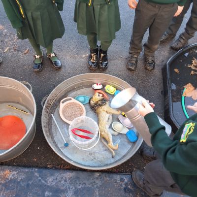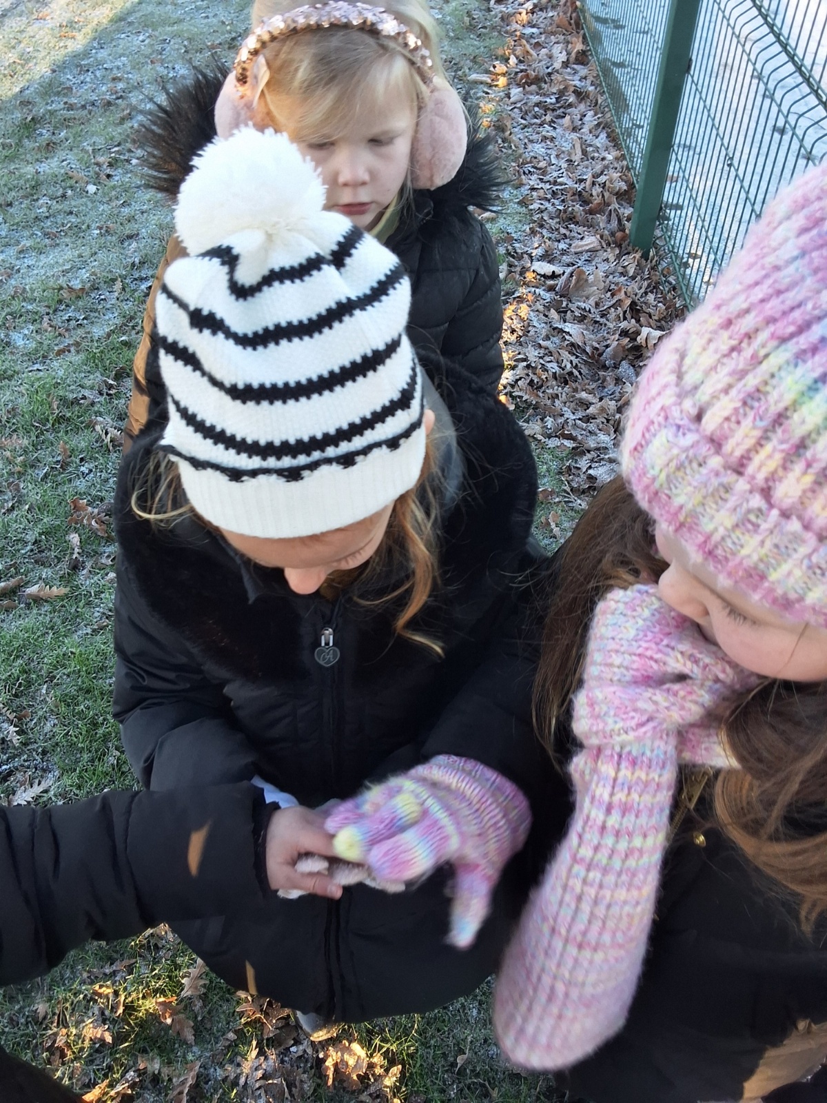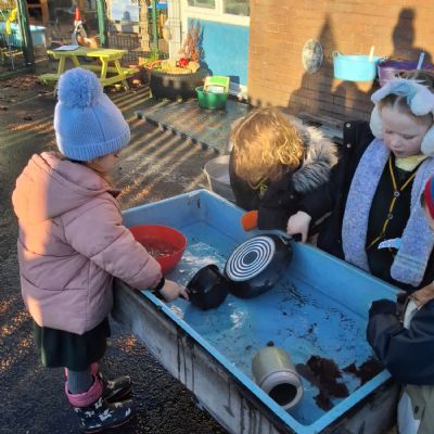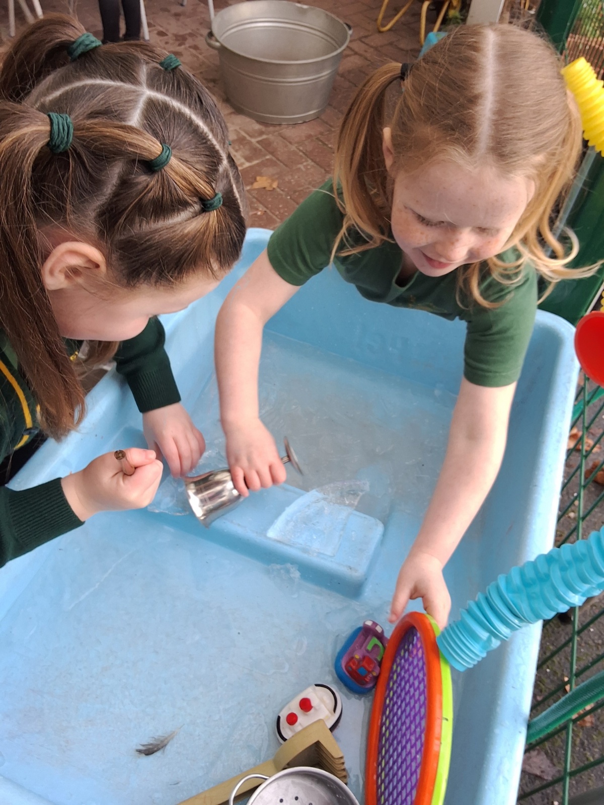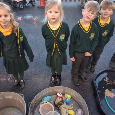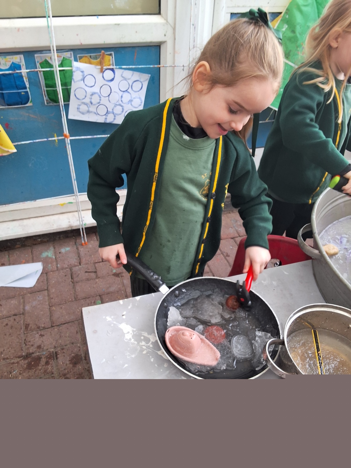 It was very cold when we returned in January. There was a lot of ice and Mr Jones had put grit/salt on our playground so we explored our grounds. We decided to freeze objects by leaving them outside in water overnight. When we arrived at school the following morning, they were frozen! We had to find ways to get the objects out of the ice.