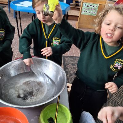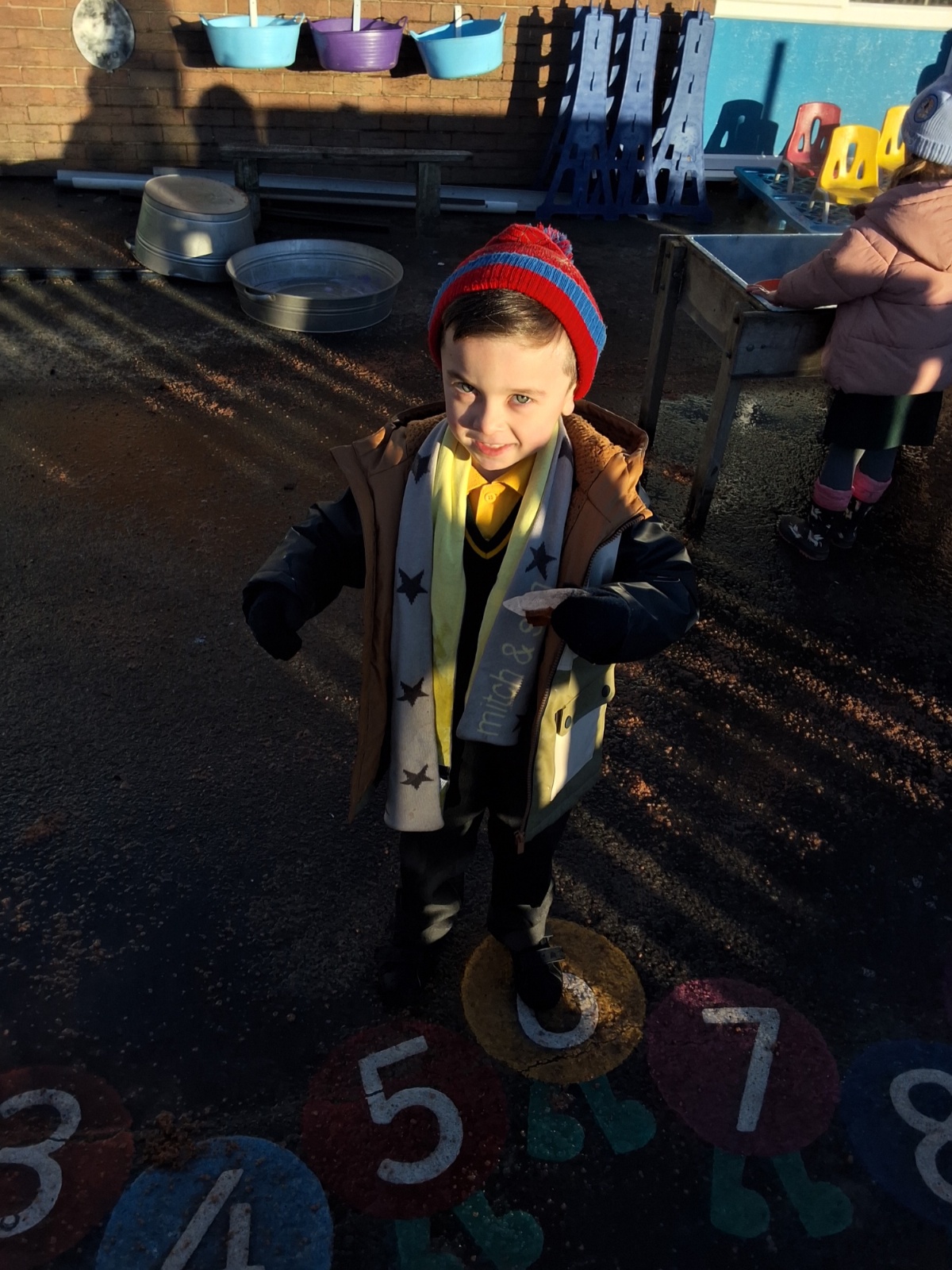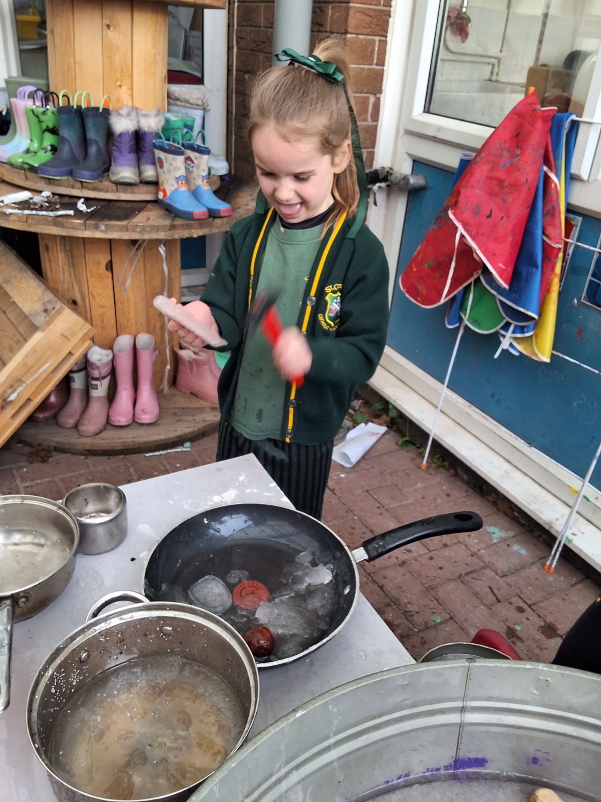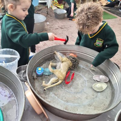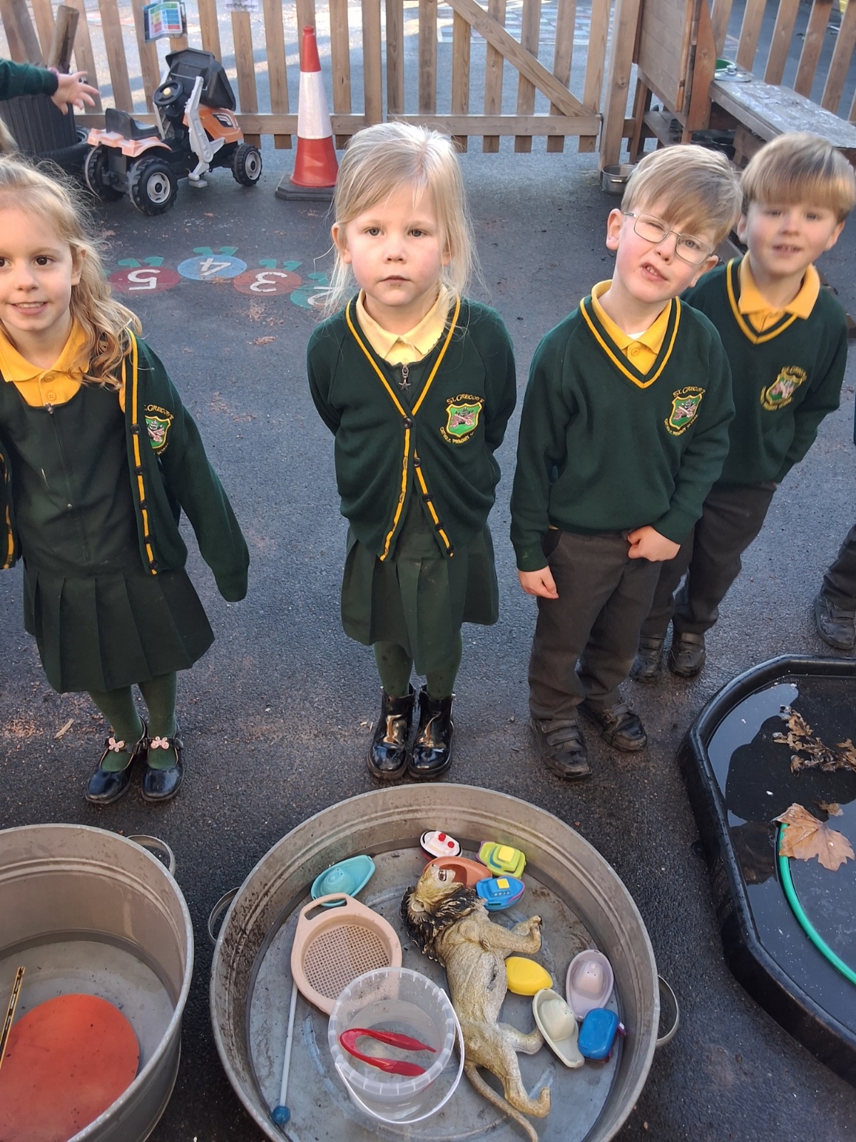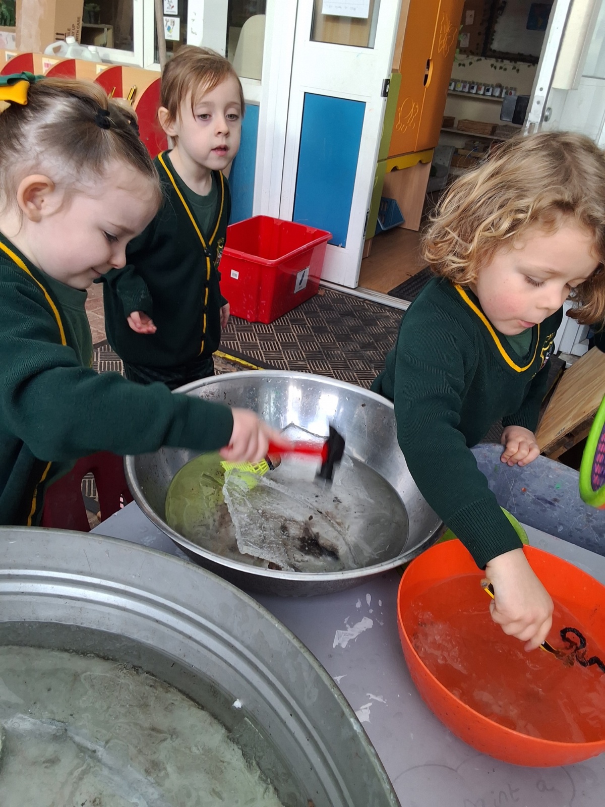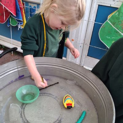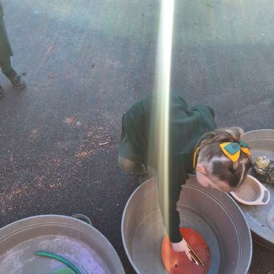 It was very cold when we returned in January. There was a lot of ice and Mr Jones had put grit/salt on our playground so we explored our grounds. We decided to freeze objects by leaving them outside in water overnight. When we arrived at school the following morning, they were frozen! We had to find ways to get the objects out of the ice.