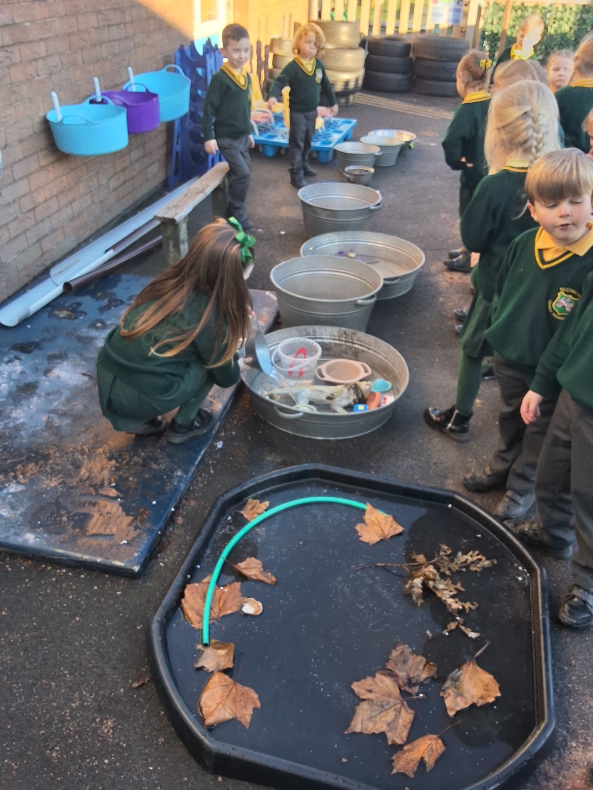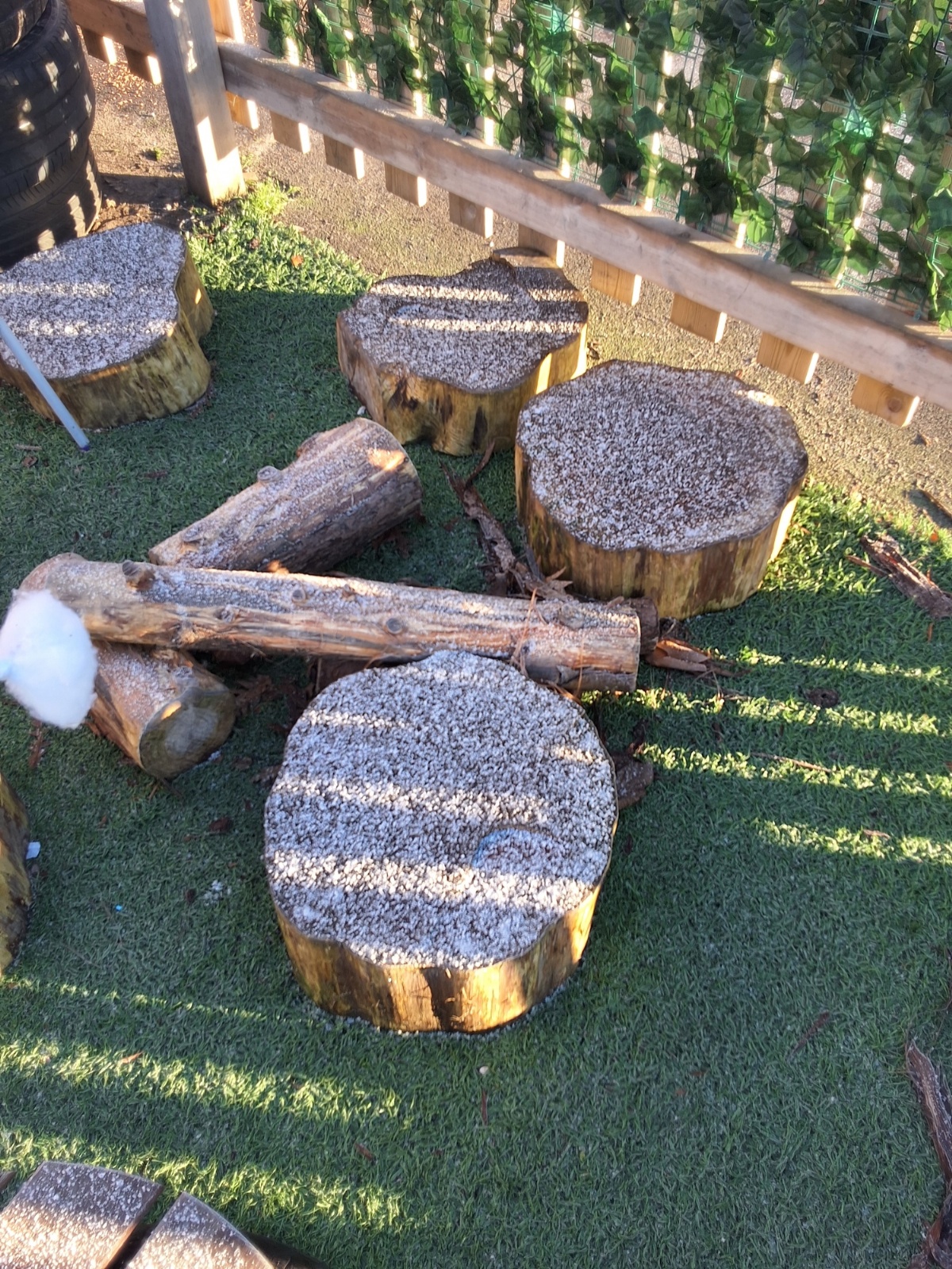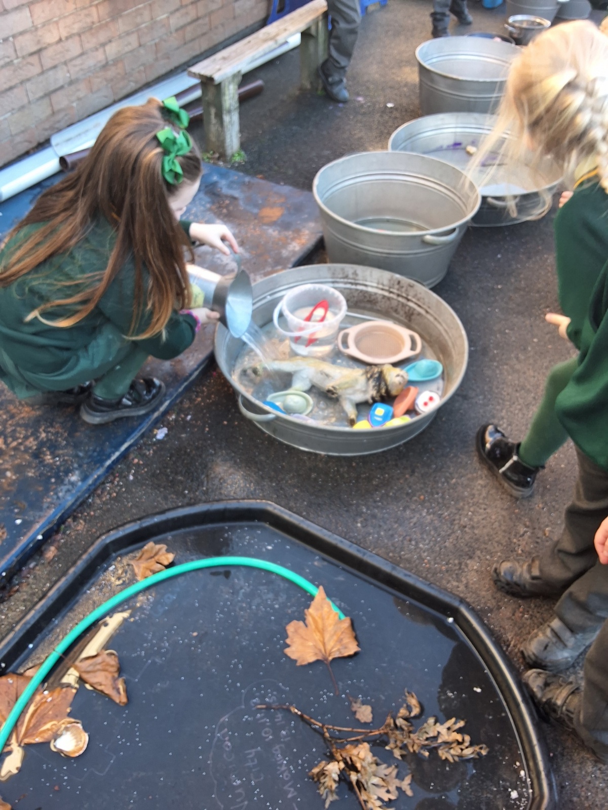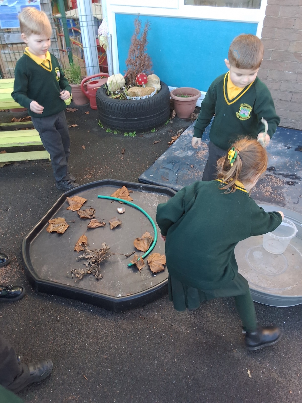 It was very cold when we returned in January. There was a lot of ice and Mr Jones had put grit/salt on our playground so we explored our grounds. We decided to freeze objects by leaving them outside in water overnight. When we arrived at school the following morning, they were frozen! We had to find ways to get the objects out of the ice.