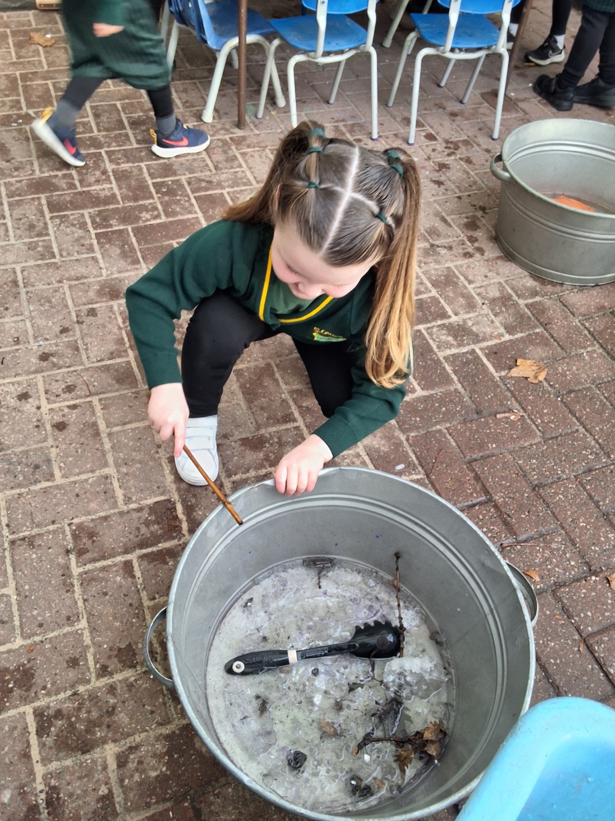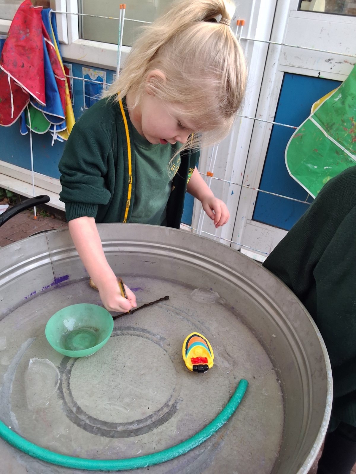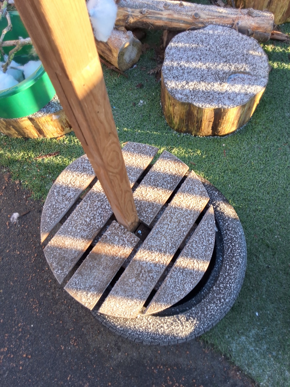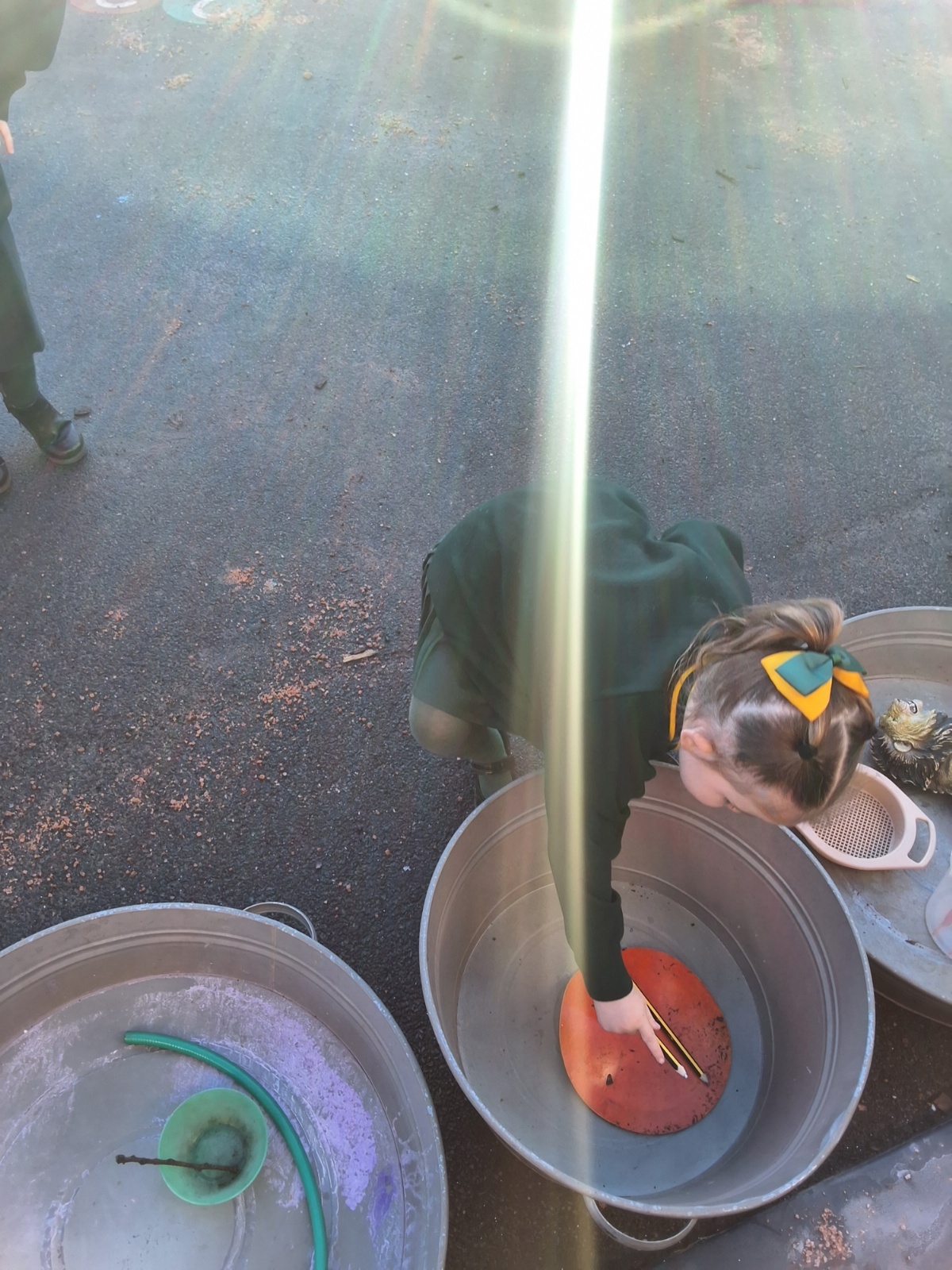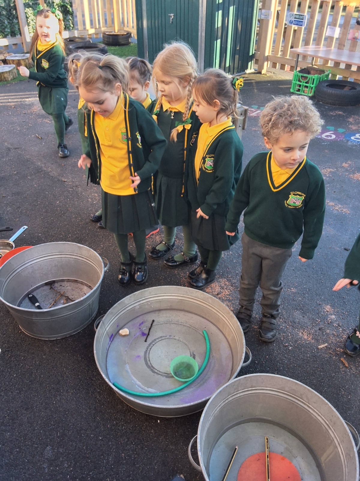 It was very cold when we returned in January. There was a lot of ice and Mr Jones had put grit/salt on our playground so we explored our grounds. We decided to freeze objects by leaving them outside in water overnight. When we arrived at school the following morning, they were frozen! We had to find ways to get the objects out of the ice.