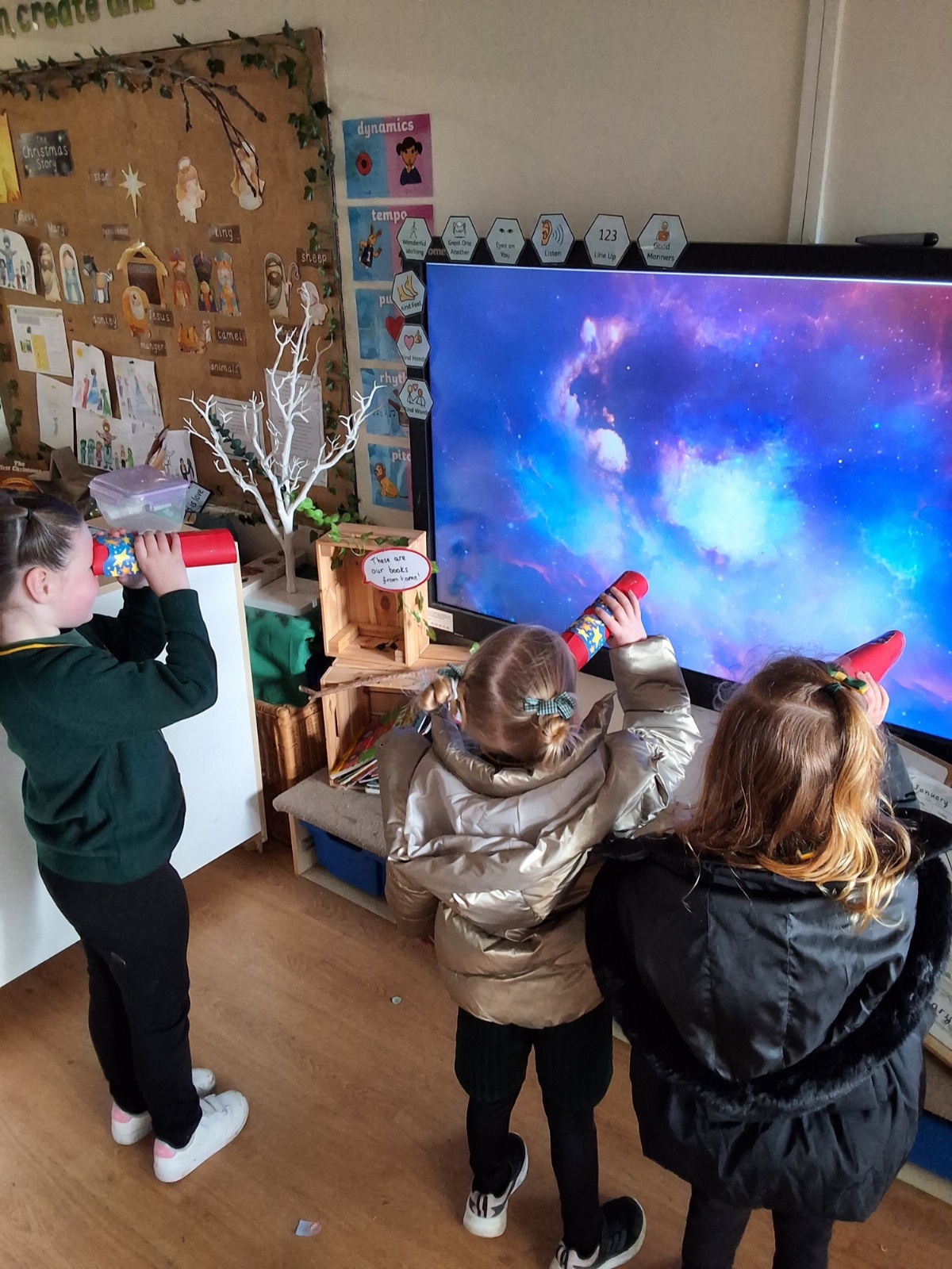 We've been learning about Space. We've painted and ordered the planets, sang songs about the solar system and learnt about astronomers and astronauts.