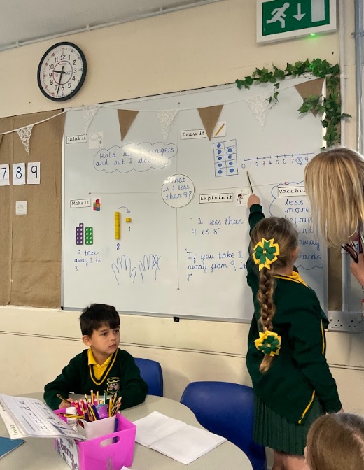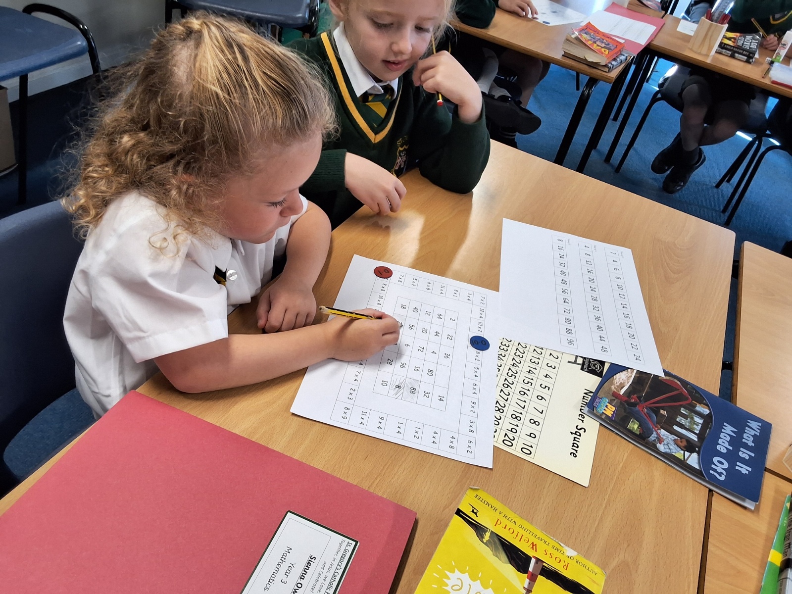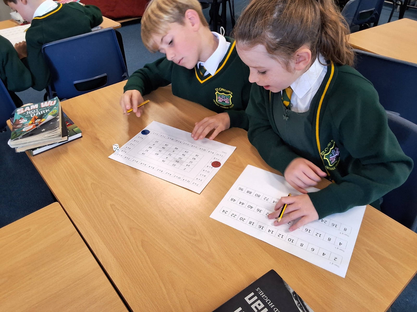 At St Gregory’s, we meet the needs of all mathematicians. The planning we use allows children to improve their own metacognition and access the lesson at their level. Pupils are given additional support in lessons dependent on their individual needs. For example, this may include, manipulatives readily available, worked and partially worked examples, templates and ready-made tables and charts and re-teaching and overlearning. For identified children, small group targeted intervention programmes (e.g., NumberSense or Becoming1stClass@Number) take place throughout the school week.