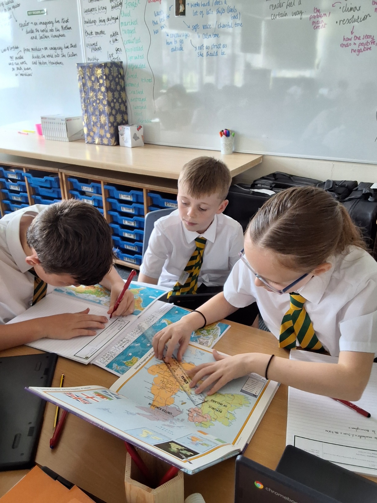 Each year our geography curriculum begins with a ‘Spatial Sense’ unit that explicitly teaches geographical skills such as locating places on a map, positioning items on a map, using symbols in a key, interpreting scale, reading climate graphs, identifying locations using co-ordinates, interpreting population data, identifying elevation on relief maps and more. The spatial sense units for each year group are positioned at the beginning of the year to explicitly teach skills which will then be used in context throughout the rest of the year as children apply those skills to learn more about people, places and the environment. The spatial sense units build on prior knowledge before moving children on as the level of challenges increases from year to year. In Key Stage One the Spatial Sense units require children to undertake fieldwork and use observational skills to study the geography of their school and the surrounding environment. In Year 5, children study a further unit on local geography where they undertake fieldwork to observe, record and present the human and physical features in the local area, focusing on an issue that the local area faces. The aim of the spatial sense units is to build children’s geographical literacy so that they are able to use an atlas, maps and geographical data with ease to answer questions they may have about the world.