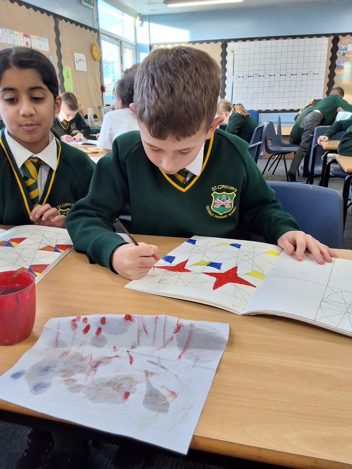 St. Gregory’s art curriculum provides for gradual progression of skills (split into painting, drawing, 3D form, collage, textiles, printmaking, photography and mixed media), introducing the children to as diverse a range of materials as possible. It also provides for progression in terms of knowledge of different concepts and types of art (for example Style in Art and Narrative Painting are studied in year 1, and then revisited in year 2 in History Painting and in year 5 in Style in Art). The structure of our planning also provides for progression in terms of process in art, both in terms of critical analysis of others’ art and the necessary observation, exploration and evaluation needed for the children to create their own art. Activities children are directed to undertake in lessons are designed with an eye to the importance of learning and practicing process. These activities include verbal and written observations and observational, analytical and imaginative drawing activities in key stage 1, leading to the process of independent investigation, observation, annotation, sketching, design and planning (allowing the children to experiment and invent) by the end of key stage 2. Independent and investigative study and the understanding of process is particularly provided for in the units which conclude the year for years 5 and 6.