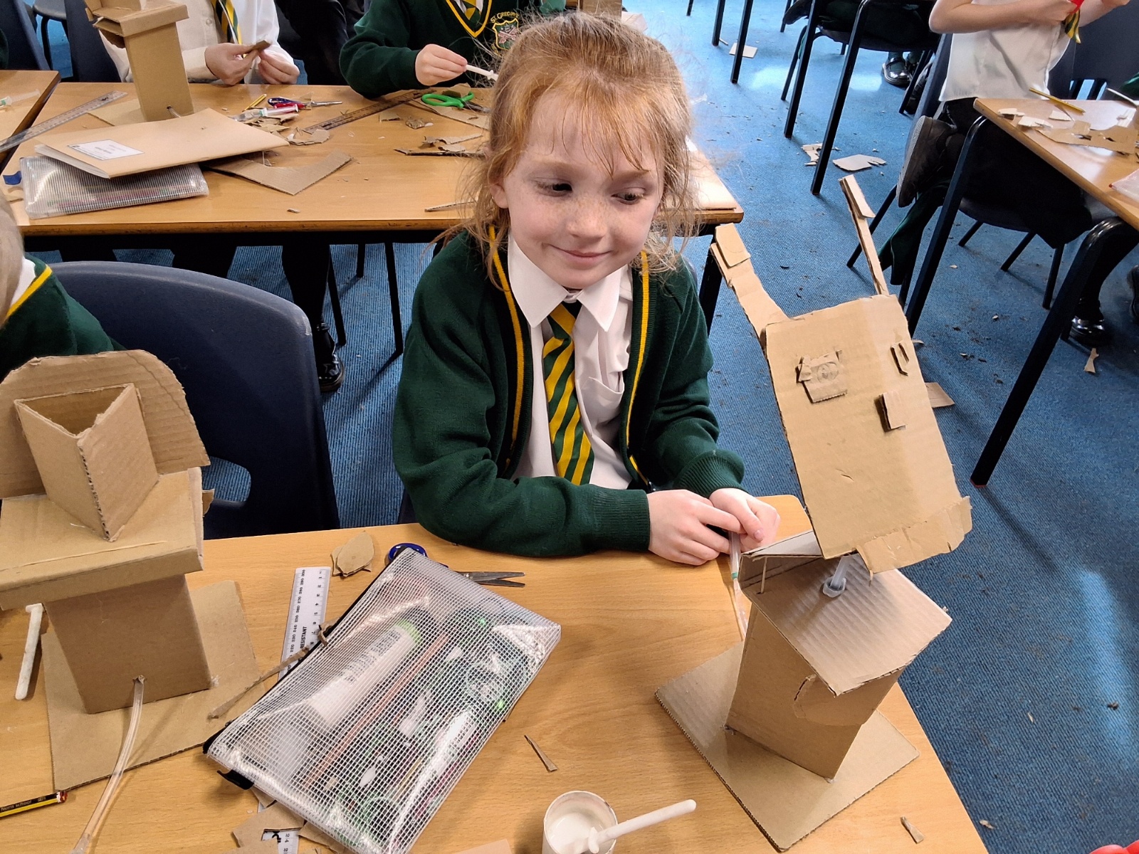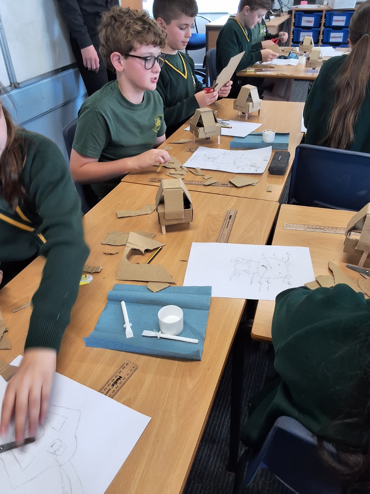 In ‘build’, children learn from our specialist DT Teacher, Steph O’Donnell, about the creation of structures and mechanical and electrical devices to create products such as toys, moving cards, hydraulic heads, electronic wobblers and fairground rides. This culminates with year six learning to consider the user in real life, designing a water wall for children in reception. Once again, the practical process of designing and creating a product is interleaved with learning about concepts which have a bearing on what the students make. These concepts, for example force, motion and the properties of materials are often connected with those encountered in the science curriculum.