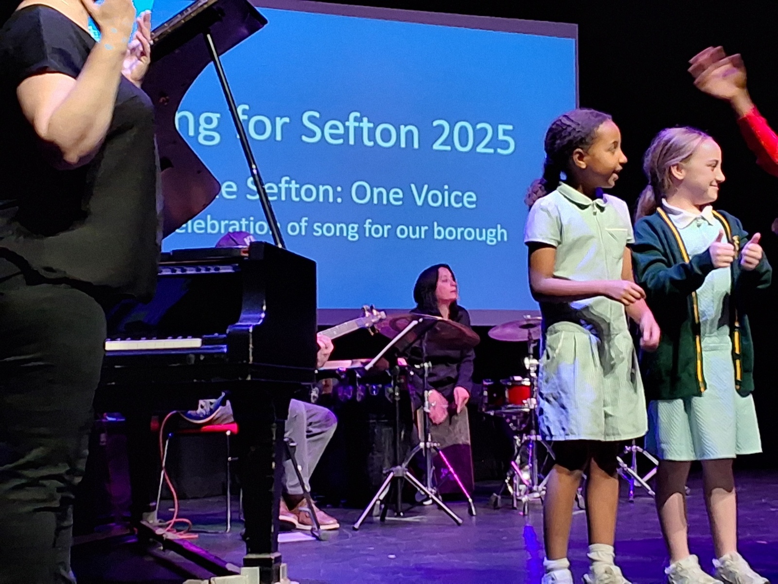 Inspirational visits to hear the Royal Liverpool Philharmonic Orchestra form a central part of our offer. Children in KS1 and Lower KS2 attend annually to experience live orchestral performance, with all pupils having opportunities to sing, accompanied by the world-renowned orchestra, as part of a mass choir; we also target UKS2 children who show talent and interest for these visits. These encounters with professional musicians help children appreciate music at its highest level and inspire them to pursue their own musical journeys. Alongside this, we identify children who show particular musical interest or talent and support them to join Sefton’s wider musical ensembles, ensuring that potential is nurtured and ambition encouraged.