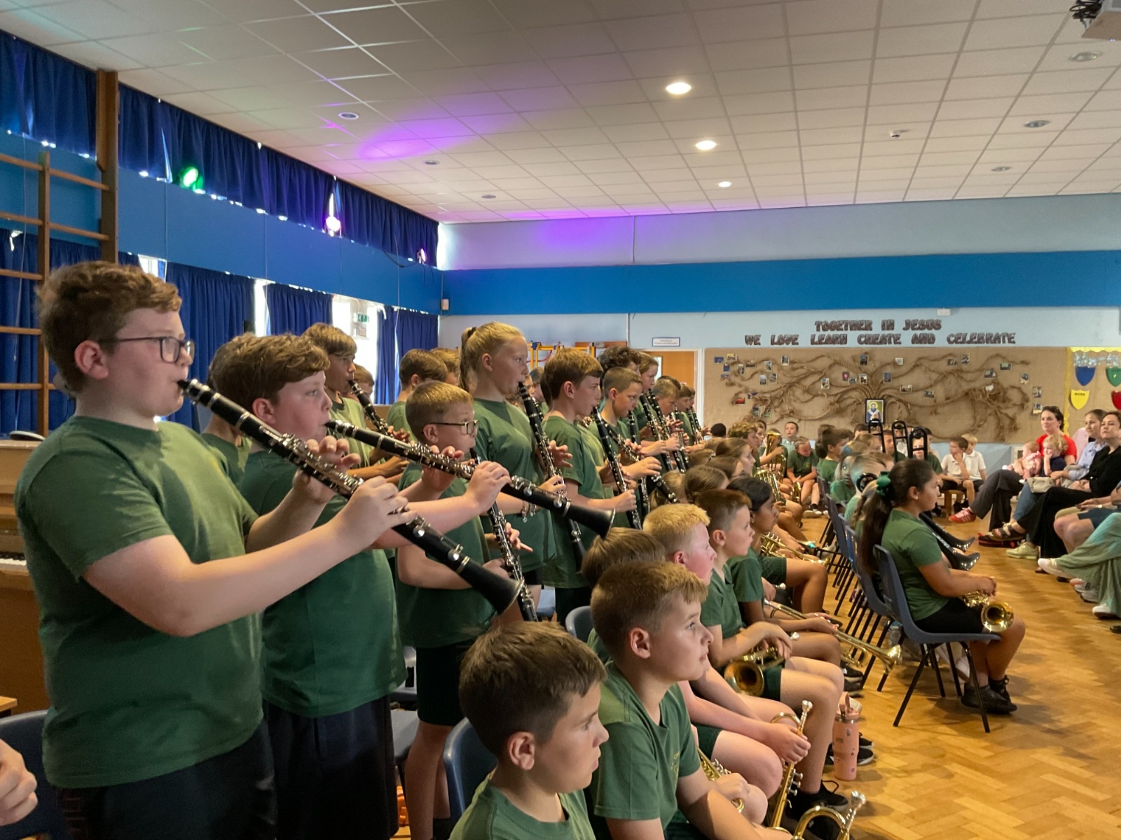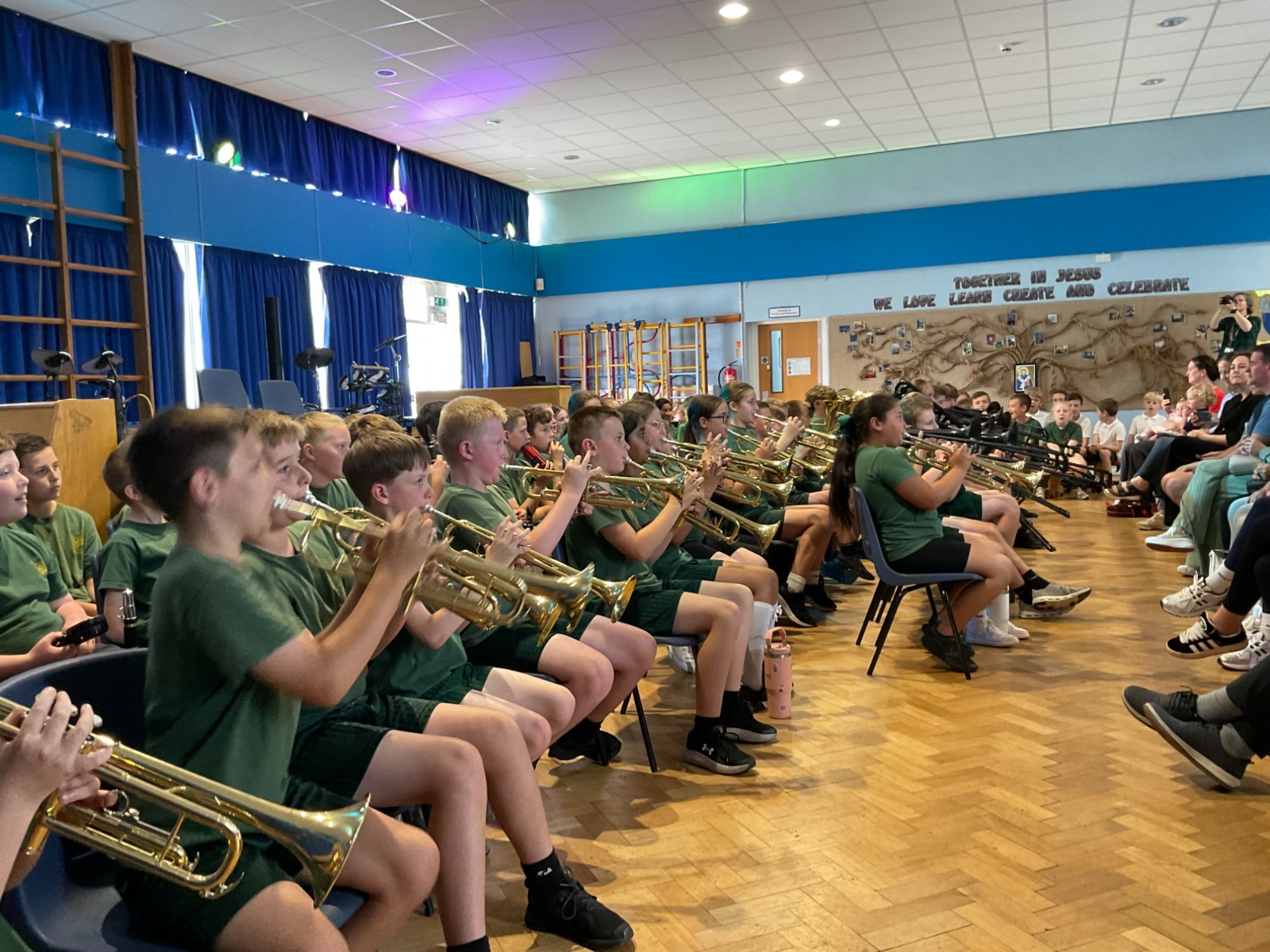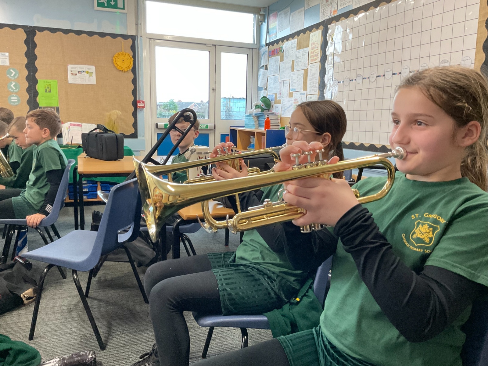 Our rich musical life also thrives through extra-curricular provision. St. Gregory’s has a well-established Choir, performing widely in the local community—from care homes at Christmas to parish celebrations of worship—and even on the national stage at Manchester’s Co-Op Arena as part of Young Voices. Our St. Gregory’s Big Band and peripatetic instrumental programme offer further opportunities for performance and progression. Every child in Key Stage 2 performs at least three times a year to the school community, culminating in an end-of-year celebration where families are invited to share in their achievements. These experiences exemplify our belief that musical performance and appreciation are for all, and that through music, our children learn to express joy, connect with others and celebrate the gifts God has given them.
